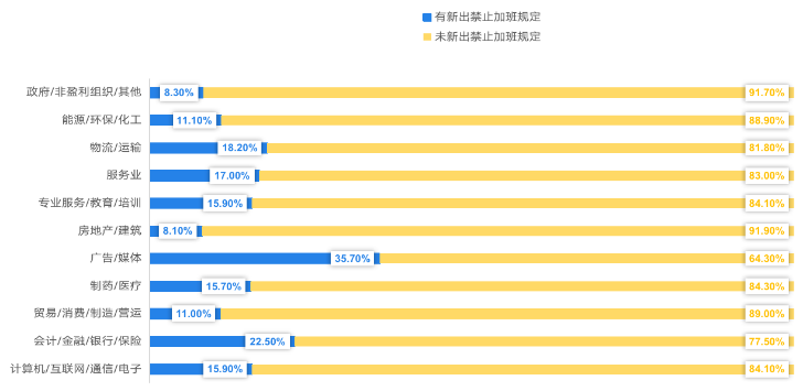 - 16.1%的职场人所在企业已出台禁止加班规定;