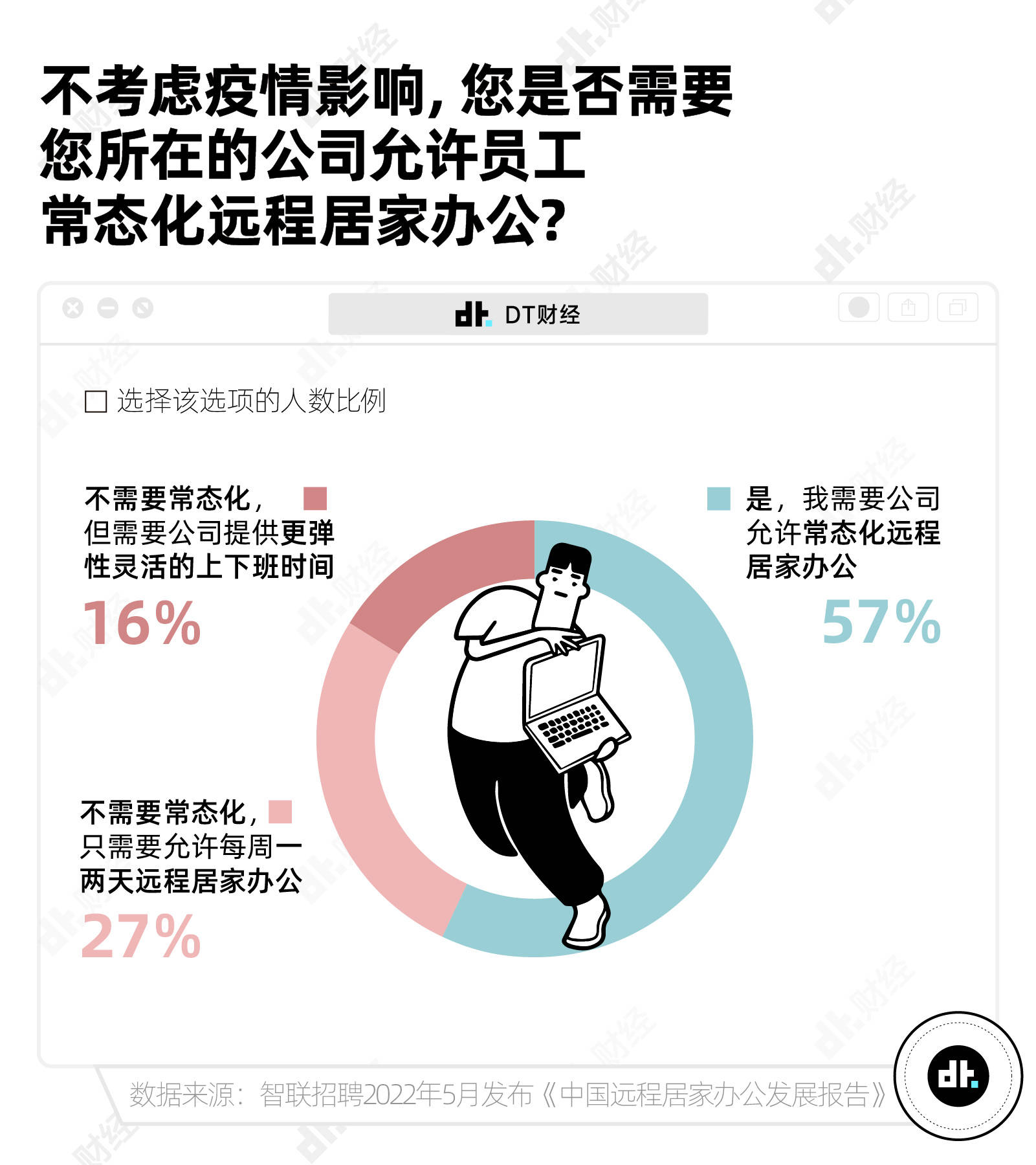 2022年5月,智联招聘联合北京大学国家发展研究院发布《中国远程居家办公发展报告》。结果表明,在疫情的影响下,远程居家办公招聘占比快速上升,而在体验了远程居家办公的好处之后,即便没有疫情,求职者也更看重公司是否支持灵活办公。