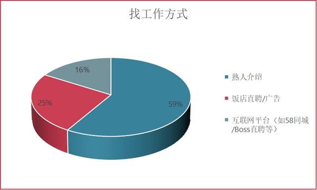 报告显示,靠熟人介绍是厨师群体找工作的主要渠道,占比高达73%;饭店直聘/广告的方式占比17%;互联网平台招聘网站等只占10%。